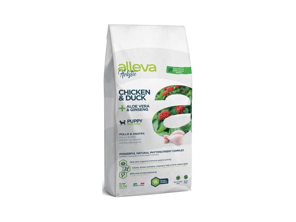 ALLEVA HOLISTIC Dog Dry Puppy/Junior Chicken Maxi 12kgPředstavujeme vám nejpokročilejší bezobilný produkt na trhu – granule, při jejichž přípravě jsou veškeré ingredience vařeny šetrně v páře, aby si uchovaly vysokou nutriční hodnotu. To platí zejména pro prvotřídní maso, čerstvé i dehydrované, které je hlavní složkou hojně obsaženou ve všech recepturách.