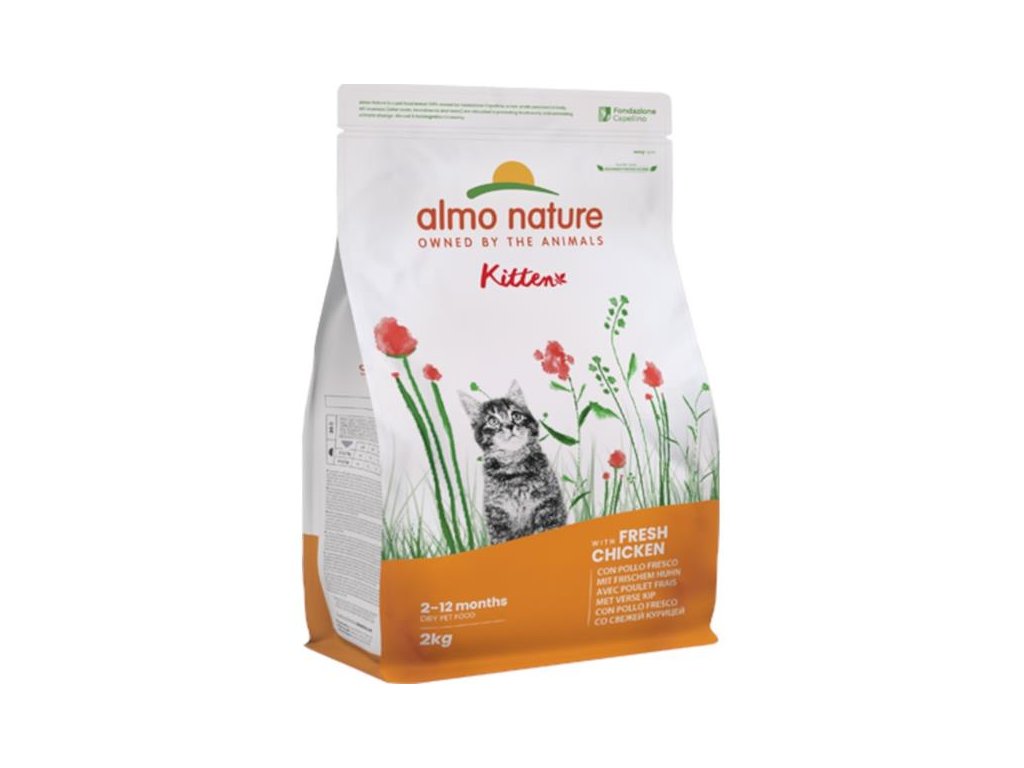 Almo Nature Kitten kuře 400gAlmo Nature Kitten je kompletní krmivo určené pro koťata ve věku 2–12 měsíců a také pro březí a kojící kočky. Jako hlavní složku obsahuje 26 % čerstvého kuřecího masa, které zajišťuje vysokou chutnost krmiva. Dále je obohaceno o omega-3 a omega-6 mastné kyseliny, minerály, vitamíny, taurin a prebiotika pro podporu střevní mikroflóry. Granule jsou konzervovány přírodně, neobsahují GMO, dochucovadla, barviva ani soli.