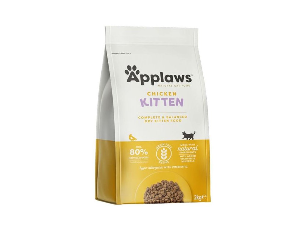 Applaws Cat Dry Kitten Chicken 2 kgApplaws Kitten Chicken je kompletní krmivo pro koťata do věku 12 měsíců a březí nebo kojící kočky všech plemen. Granule neobsahují obiloviny ani lepek, jsou přirozeně hypoalergenní a přírodně konzervované vitamínem E a výtažkem z rozmarýnu. Obsahují sušené brusinky známé svým přínosem pro zdraví močových cest a prebiotika, která pomáhají udržovat zdravý trávicí systém. Přírodní omega-3 a omega-6 mastné kyseliny vyživují srst a dodávají jí hedvábný lesk. Prospívají také zdraví kůže. Krmivo obsahuje přírodní antioxidanty, jejichž význam pro udržení zdraví a vitality koček je stále více uznáván.
