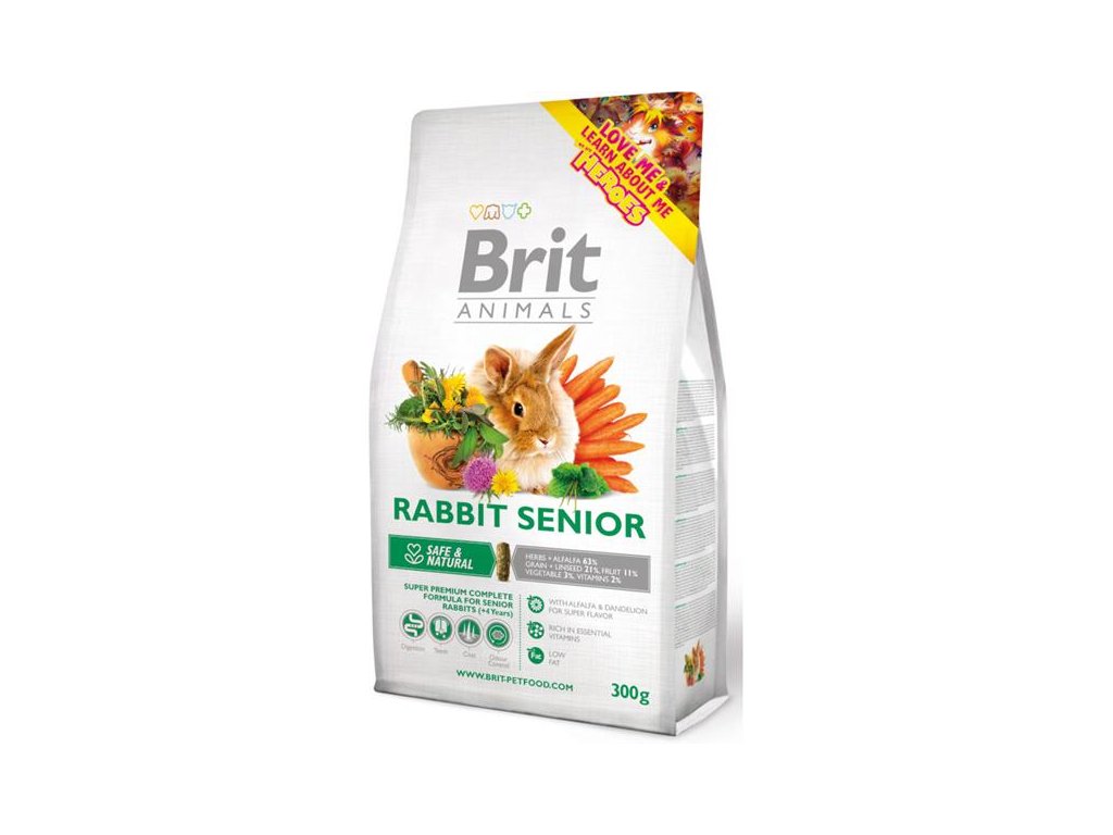 Brit Animals RABBIT SENIOR Complete 1,5 kgSuperprémiové krmivo pro starší králíky s vysokým obsahem vlákniny nezbytný pro správné trávení. Obsahuje ostropestřec mariánský na podporu zdravého trávení a metabolismu.