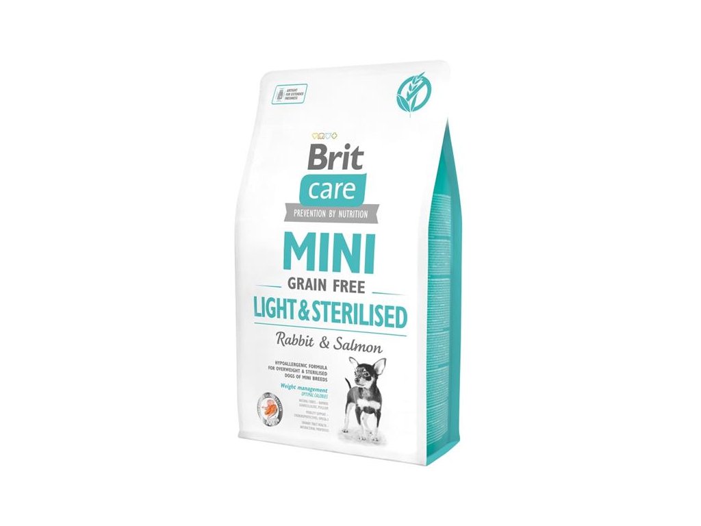 Brit Care Mini Dog Light & Sterilized 0,4 kgSuperprémiové krmivo pro psy vyžadující kontrolu hmotnosti nebo pro psy po sterilizaci s králíkem a lososem.