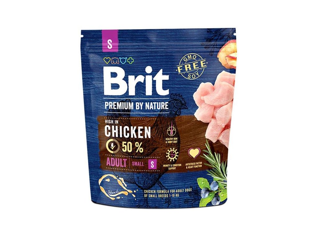 Brit Premium by Nature Dog Adult S 1 kgPrémiová receptura s kuřecím masem pro dospělé psy malých plemen o hmotnosti do 10 kg.