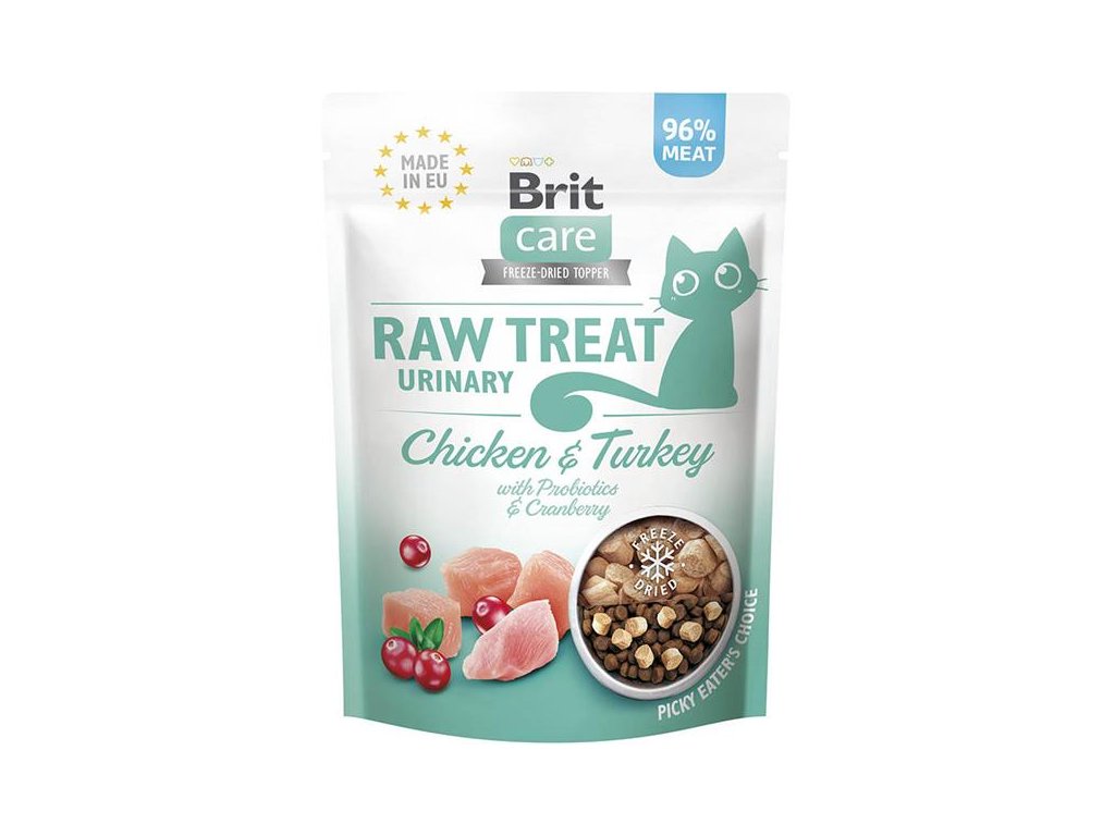 Brit RAW Treat Cat Urinary, 40 gDoplňkové krmivo vhodné pro kastrované kočky obsahuje 96 % čerstvého masa, které je zdrojem vysoce kvalitních bílkovin nezbytných pro kočičí zdraví. Mrazem sušené (lyofilizované) pamlsky lze použít i jako lahodný doplněk granulí, který promění běžné krmení v neodolatelný zážitek.