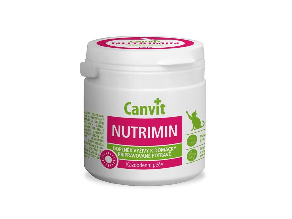 Canvit Nutrimin pro kočky NOVÝ plv 150 gKomplex 14 vitamínů, mikroprvků a Taurinu s vysokou biologickou dostupností pro vyvážené krmení a prevenci hypovitaminóz u koček krmených masem a domácí stravou. Doma připravovaná strava a maso pro kočky obsahuje dostatečné množství proteinů, sacharidů a tuků, ale z pohledu obsahu vitamínů, minerálů a Taurinu je tato strava nedostatečná. Příkladem může být docela běžné krmení koček masem, které obsahuje velké množství fosforu, ale minimum biologicky dostupného vápníku. Dlouhodobé krmení stravou chudou na vitamíny, minerály a Taurin může u koček způsobit nenávratné poškození zdravotního stavu. Canvit Nutrimin obsahuje komplex 14 vitamínů, organicky vázaných mikroprvků a Taurinu pro přípravu vyvážené krmné dávky.