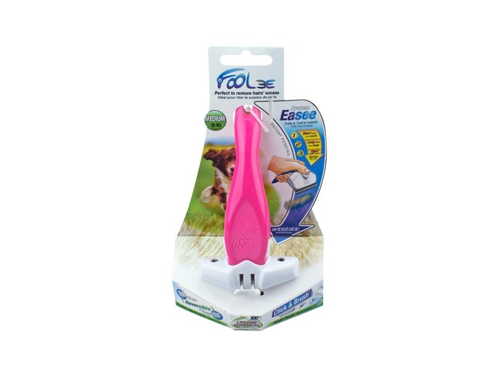 Hřeben FoOlee Easee DOG M růžovýFoOlee Easee® je výsledkem více než tří let výzkumu a vývoje s cílem vytvořit hřeben, který bude stejně účinný jako kovové hřebeny, a přitom šetrnější k srsti a kůži domácích mazlíčků. Čepele s dvěma řadami dokonale hladkých zubů z patentovaných kompozitních materiálů minimalizují riziko, že hřeben zvířeti poškodí srst nebo poškrábe či zraní pokožku. Jsou vysoce odolné, antistatické a nevyvolávají alergické reakce.