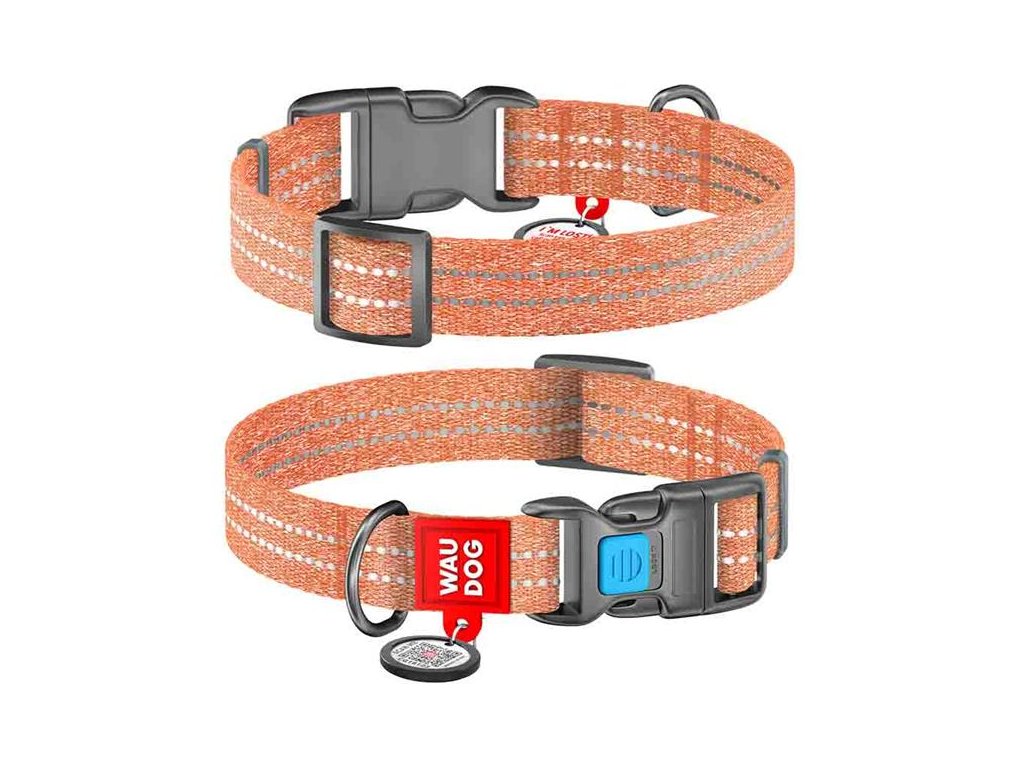 Obojek bavlna 25mmx33-49cm WAUDOG oranžovýObojek WAUDOG Re-cotton kombinuje klasický styl a kvalitní provedení s využitím nových technologií. V zájmu udržitelnosti je vyroben z recyklovaných surovin. Pásek je z recyklované bavlny, pevného, ale lehkého, prodyšného a na dotek velmi příjemného materiálu s hypoalergenním složením. Obojek se snadno udržuje – lze jej prát – a po namočení velmi rychle schne. Pro větší bezpečnost má reflexní prošití a Smart ID známku s unikátním QR kódem.
