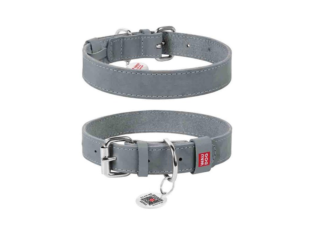 Obojek kůže 35mmx46-60cm WAUDOG šedýObojek WAUDOG Classic kombinuje klasický styl a kvalitní provedení s využitím nových technologií. Je vyroben z kvalitních materiálů: jemné pravé kůže podšité pevnou, ale na dotek příjemnou recyklovanou bavlnou. Zapíná se na klasickou kovovou sponu. Obojek je navíc opatřen Smart ID známkou s unikátním QR kódem.
