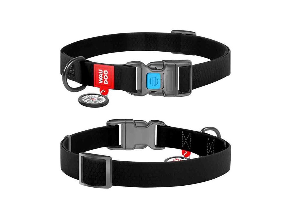 Obojek pvc 15mmx25-35cm WAUDOG černýObojek WAUDOG Waterproof je vyrobený z collartexu, inovativního materiálu, k jehož hlavním přednostem patří voděodolnost, vysoká životnost, tvarovatelnost, nízká hmotnost a snadná údržba. Pásek má na dotek příjemný, jemně texturovaný povrch a je měkčí než běžné plastové výrobky – budete-li jej tedy potřebovat časem povolit, nezůstane pokřivený v původním místě ohybu. Ve spojení s dalšími odolnými plastovými součástmi (včetně trojzubcové spony s pojistkou) tak tvoří odlehčený obojek, který pořídíte za příznivou cenu.