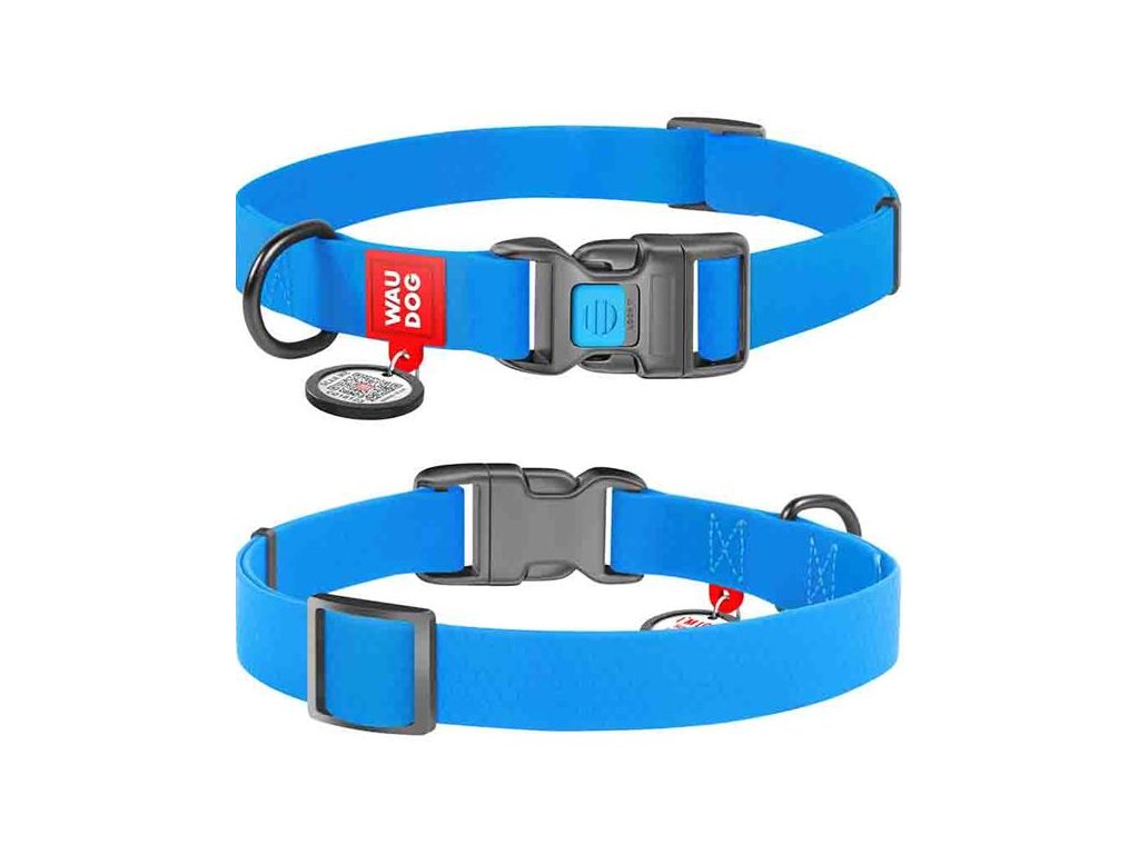 Obojek pvc 20mmx28-40cm WAUDOG modrýObojek WAUDOG Waterproof je vyrobený z collartexu, inovativního materiálu, k jehož hlavním přednostem patří voděodolnost, vysoká životnost, tvarovatelnost, nízká hmotnost a snadná údržba. Pásek má na dotek příjemný, jemně texturovaný povrch a je měkčí než běžné plastové výrobky – budete-li jej tedy potřebovat časem povolit, nezůstane pokřivený v původním místě ohybu. Ve spojení s dalšími odolnými plastovými součástmi (včetně trojzubcové spony s pojistkou) tak tvoří odlehčený obojek, který pořídíte za příznivou cenu.