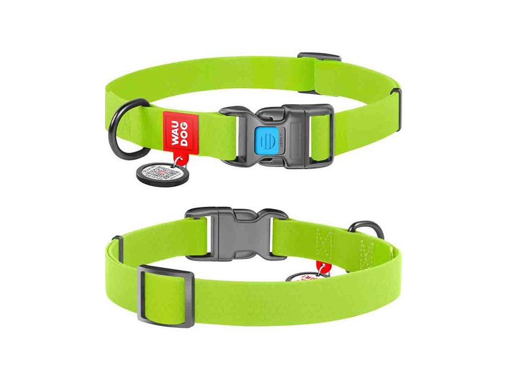 Obojek pvc 25mmx34-49cm WAUDOG zelenýObojek WAUDOG Waterproof je vyrobený z collartexu, inovativního materiálu, k jehož hlavním přednostem patří voděodolnost, vysoká životnost, tvarovatelnost, nízká hmotnost a snadná údržba. Pásek má na dotek příjemný, jemně texturovaný povrch a je měkčí než běžné plastové výrobky – budete-li jej tedy potřebovat časem povolit, nezůstane pokřivený v původním místě ohybu. Ve spojení s dalšími odolnými plastovými součástmi (včetně trojzubcové spony s pojistkou) tak tvoří odlehčený obojek, který pořídíte za příznivou cenu.
