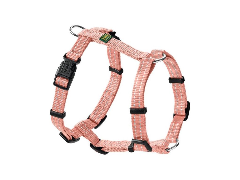 Postroj Tripoli 37-52x1,0cm XS-S Hunter růžováStylové kšírky Tripoli s reflexními proužky v barvě duhy jsou povinnou výbavou každého veselého štěňátka či malého pejska. Lehký ale přesto robustní nylon, ze kterého jsou kšírky vyrobeny, je vodotěsný a reflexní proužky v barvách duhy spojují hravou radost a bezpečnost.