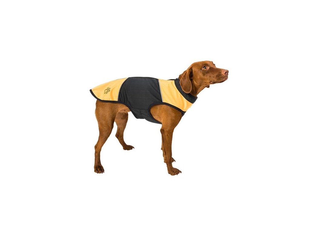 Vesta Esmé Tulák černá-okrováIdeální obleček ke každodennímu nošení v chladnějším počasí. Obleček je tvarovaný anatomicky tak, aby psa neomezoval v pohybu a přitom chránil všechny důležité partie jeho těla. Okraje jsou obšity pružným lemem, takže neodstávají a vesta díky tomu výborně drží na těle psa. Obleček má všité poutko k pověšení oblečku např. při sušení. Oblékání vesty je velice snadné a rychlé – přední nohy prostrčíte skrz otvory v oblečku a zapnete pomocí zipu. Praktický zip je všitý přes celá záda. Vesta je vhodný i pro psy starší, nemocné nebo psy, kteří se neradi oblékají.