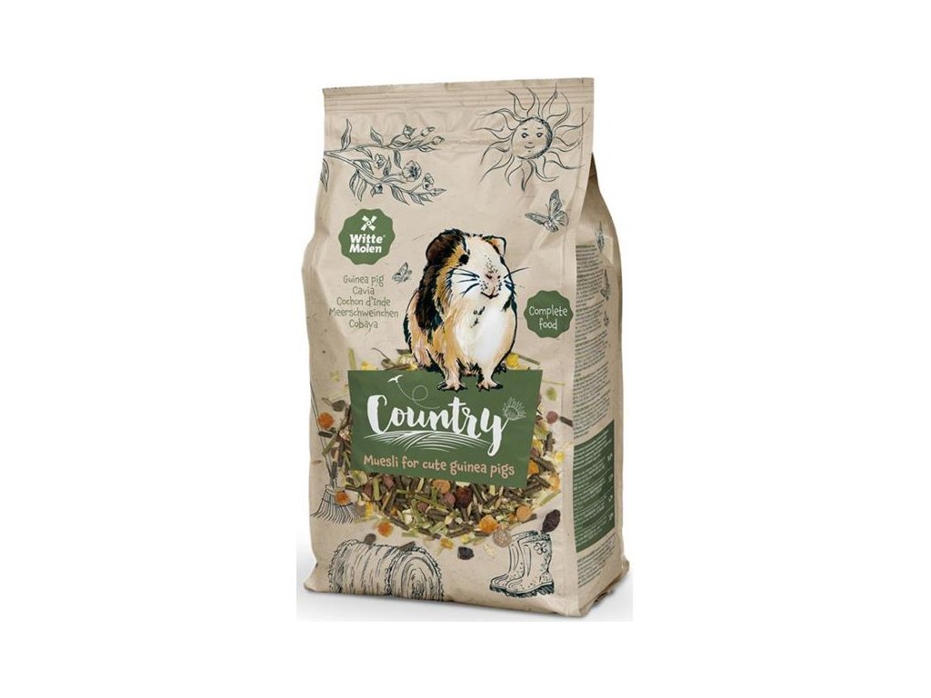 Witte Molen Country Guinea Pig - morče 3 kgSpolečnost Witte Molen vyrábí krmiva již od roku 1740 a tato směs – WitteMolen Country pro morčata – představuje v jejich portfoliu návrat ke klasickým krmivům. Jde o kvalitní, vyvážené krmivo s na vlákninu bohatými vojtěškovými (alfalfa) stébly, zeleninou, ovocem a přidaným vitamínem C. Kombinace těch nejlepších přírodních surovin sestavená na základě odborných znalostí o potřebách morčat zaručí vašemu drobnému mazlíkovi kvalitní stravu, na kterou se vy i on můžete spolehnout.